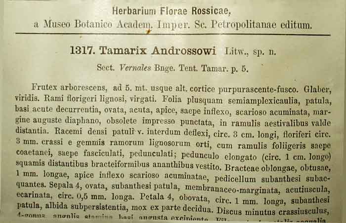 4. Типовой отдел - коллекция типовых экземпляров. Отдел включает 131 лист. Почти все из них, это гербарий из эксикат растений русской флоры. С территории Сибири из них только 8 таксонов. В основном, это Европейская часть России и Средняя Азия. Типовые экземпляры представлены 21 семейством. Самое многочисленное - Asteraceae (60 листов), из них 57 - это ястребинки. (Poaceae - 5, Apiaceae - 3, Asteraceae - 60, Betulaceae - 2, Brassicaceae - 1, Caprifoliaceae - 1, Caryophyllaceae - 1, Chenopodiaceae - 15, Dipsacaceae - 3, Euphorbiaceae - 2, Fabaceae - 6, Grossulariaceae - 1, Lamiaceae - 2, Polygonaceae - 5, Ranunculaceae - 1, Salicaceae - 10, Saxifragaceae - 1, Scrophylariaceae - 3, Tamaricaceae - 1, Ulmaceae - 6, Violaceae - 2).