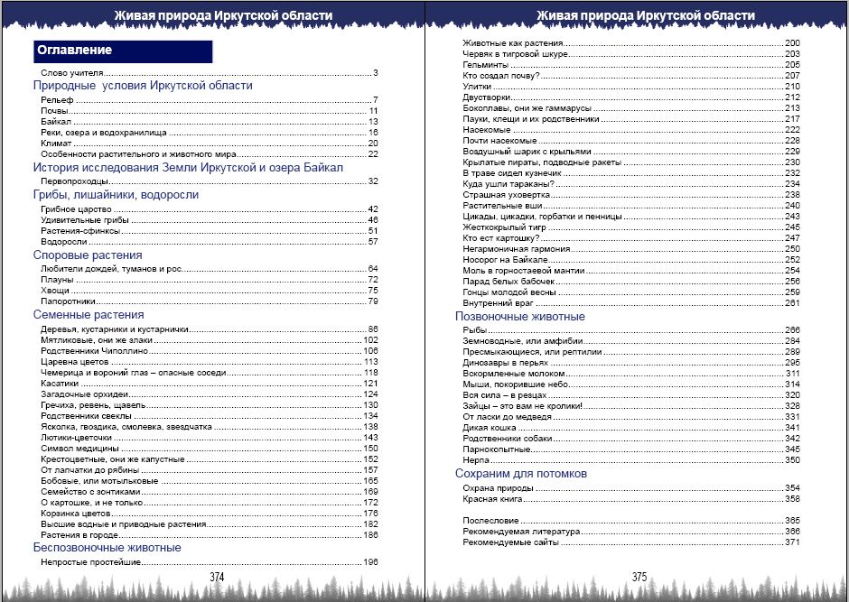 Книга будет интересна не только школьникам и учителям биологии, но и всем любителям сибирской природы. Литературы такого рода, написанной специалистами по разным группам растений и животных, в нашем регионе очень мало.В создании книги в качестве авторов и консультантов принимали участие преподаватели ИГУ, сотрудники других учреждений. Среди них В.Е. Ивушкин, Н.И. Козлова, И.Г. Марюшина, Н.В. Степанцова, А.В. Лиштва, В.А. Барицкая, С.Г. Казановский, А.Н. Петров, Н.И. Башарова и другие. Главным соавтором выступает учитель биологии высшей квалификации, директор школы-лицея г. Усть-Кут И.В. Шерстяникова. Творческий союз школьного учителя и ученых-биологов позволил создать книгу с высоким уровнем изложения материала, сочетающегося с наглядностью, продуманностью структуры в свете требований современной школьной программы и большой информативностью.