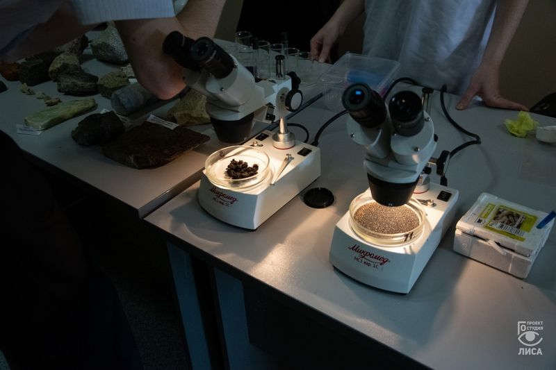 - Микромонолиты, минералы, горные породы, биогумус, эксперимент по определению карбонатов в почве могли провести школьники самостоятельно, посмотреть живых почвенных червей и все потрогать на еще одной из площадок интерактива.