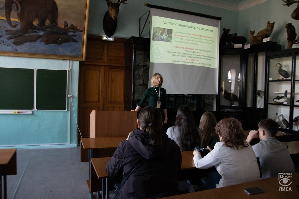 Заместитель декана по учебной работе Ксения Тараканова рассказала абитуриентам о принципах и порядке обучения, а также о курсах по подготовке к ЕГЭ по биологии, которые ведут преподаватели факультета. Отметим, что у школьников еще есть возможность попасть в группу обучающихся.