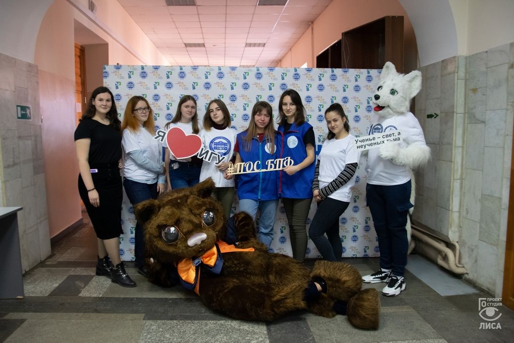 Никого не оставил равнодушным и новый формат фотозоны. Ребята с удовольствием фотографировались с талисманом Университета – бабром и его другом – волком, хэштегами мероприятия.